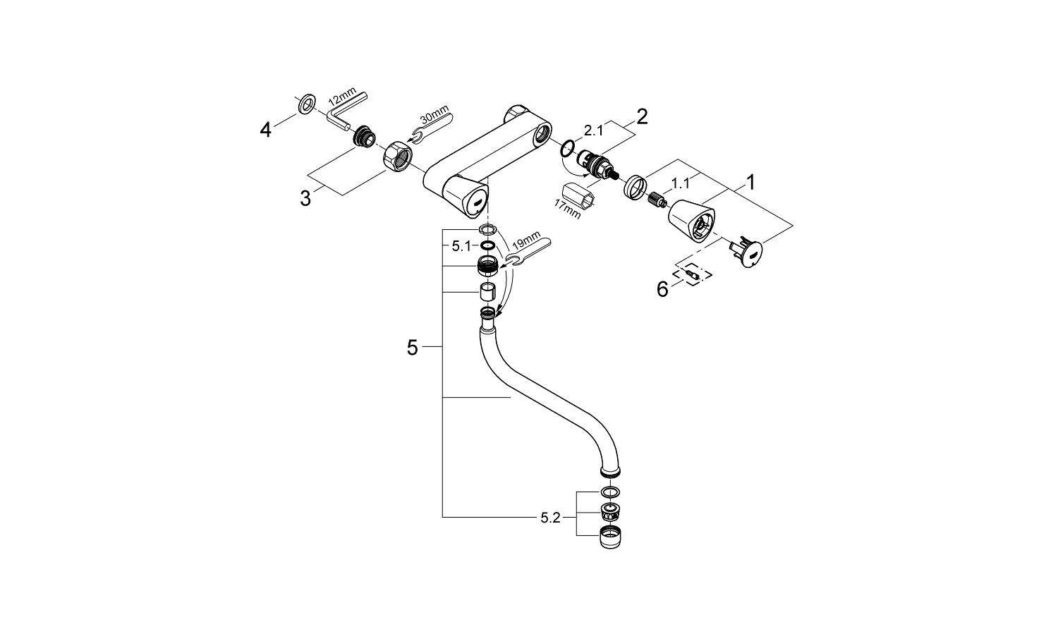 GROHE Costa S Keukenkraan - onderuitloop - inbouw - chroom