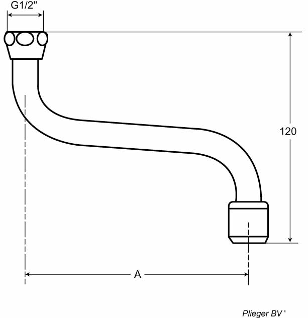Venlo draaibare onderuitloop met straalregelaar 1/2x350mm chroom