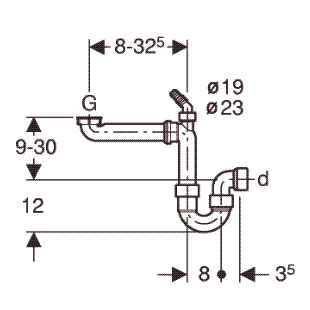 | Aansluiting sifon-afvoerplug | wartelmoer |