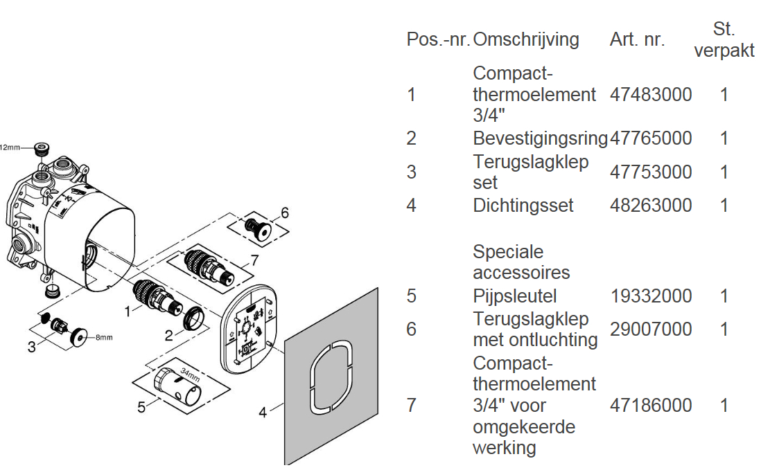 Wat zit er in de verpakking? GROHE Rapido T, Universele thermostatische inbouwkraan (opbouwdeel niet inbegrepen) en Nederlandse montagehandleiding