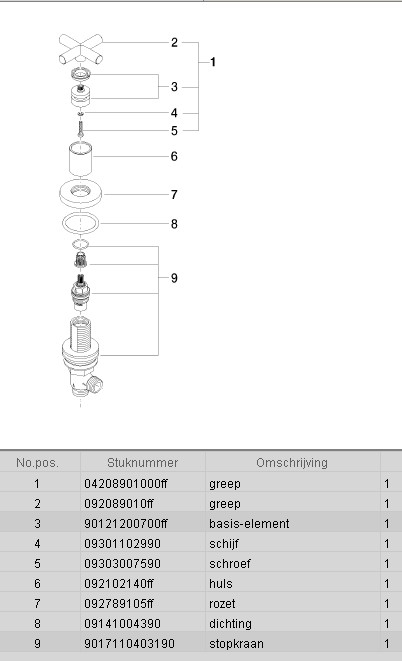 | Uitvoering inbouwstopkraan | inbouwdeel en afbouwdeel |