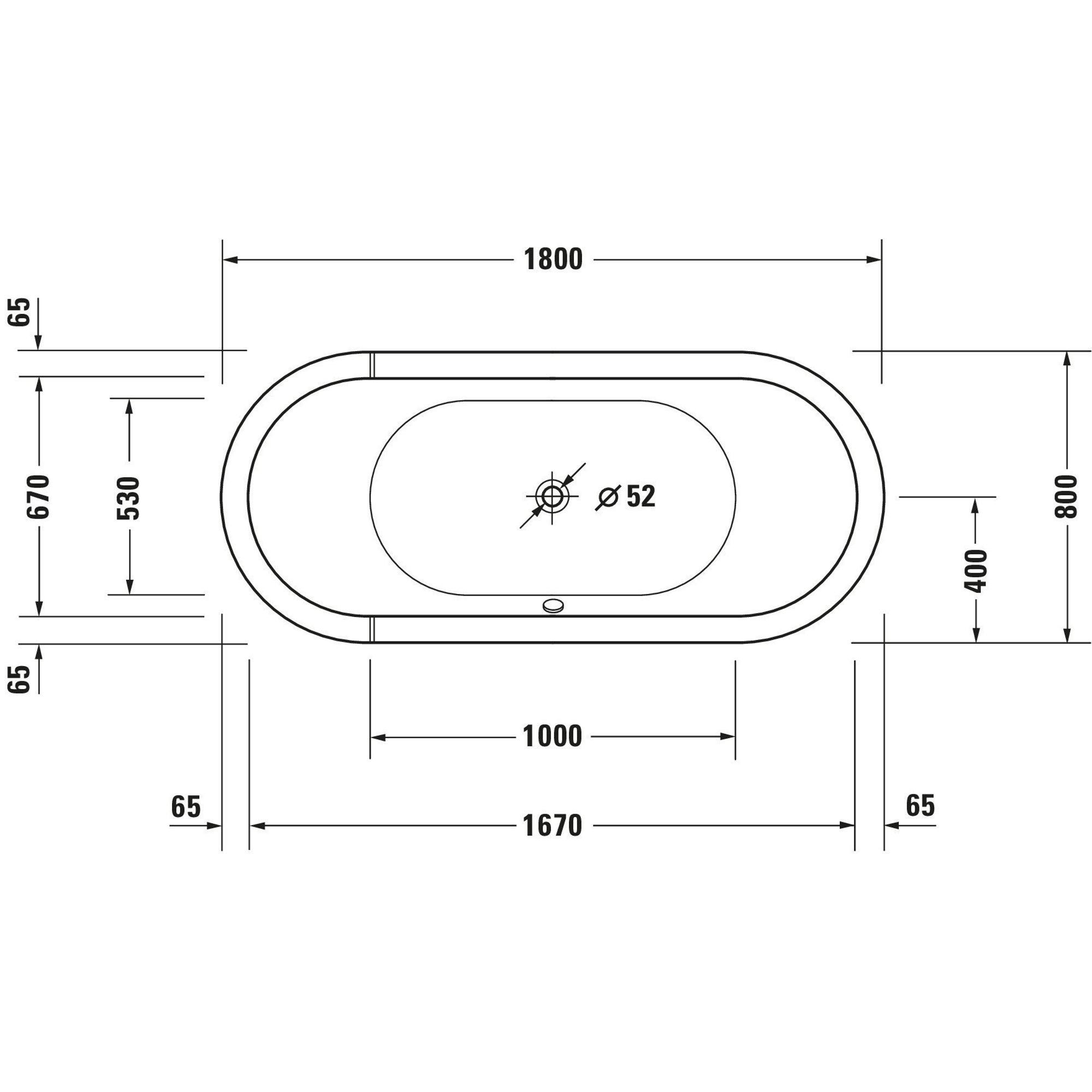 Duravit Starck bad acryl ovaal 180x80cm met paneel met poten wit