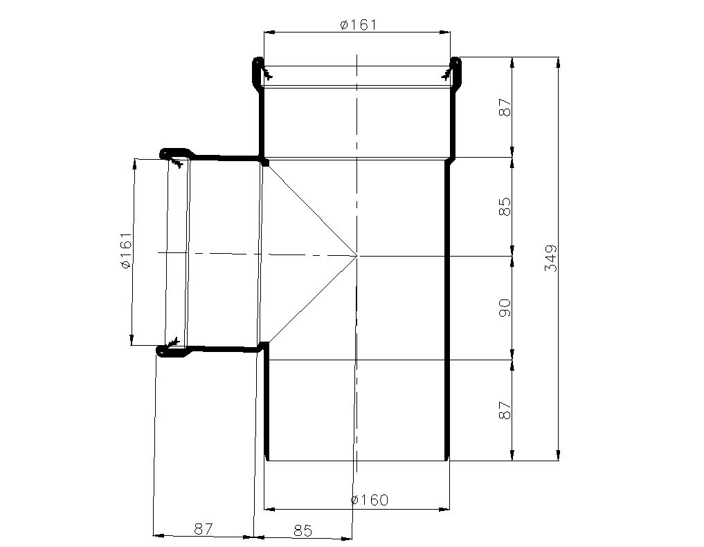 Wavin PVC manchet T stuk 90° 110x110mm 2xmof+1xspie
