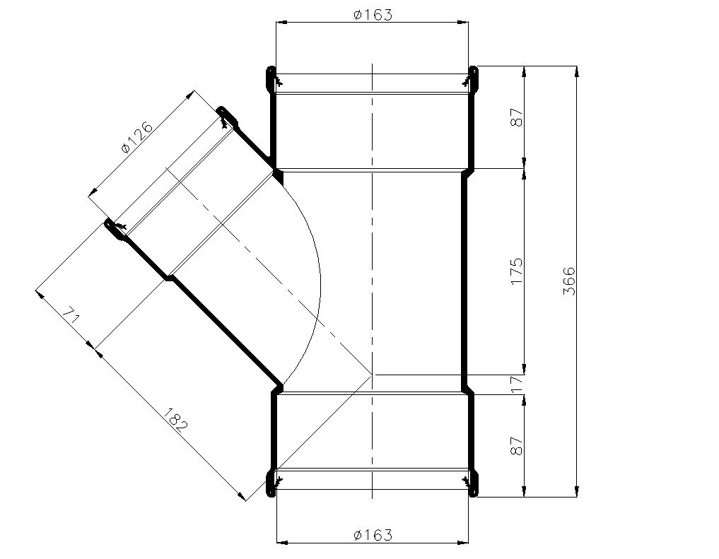 Wavin PVC manchet T-stuk 45° 160x125mm 3xmof, SN4