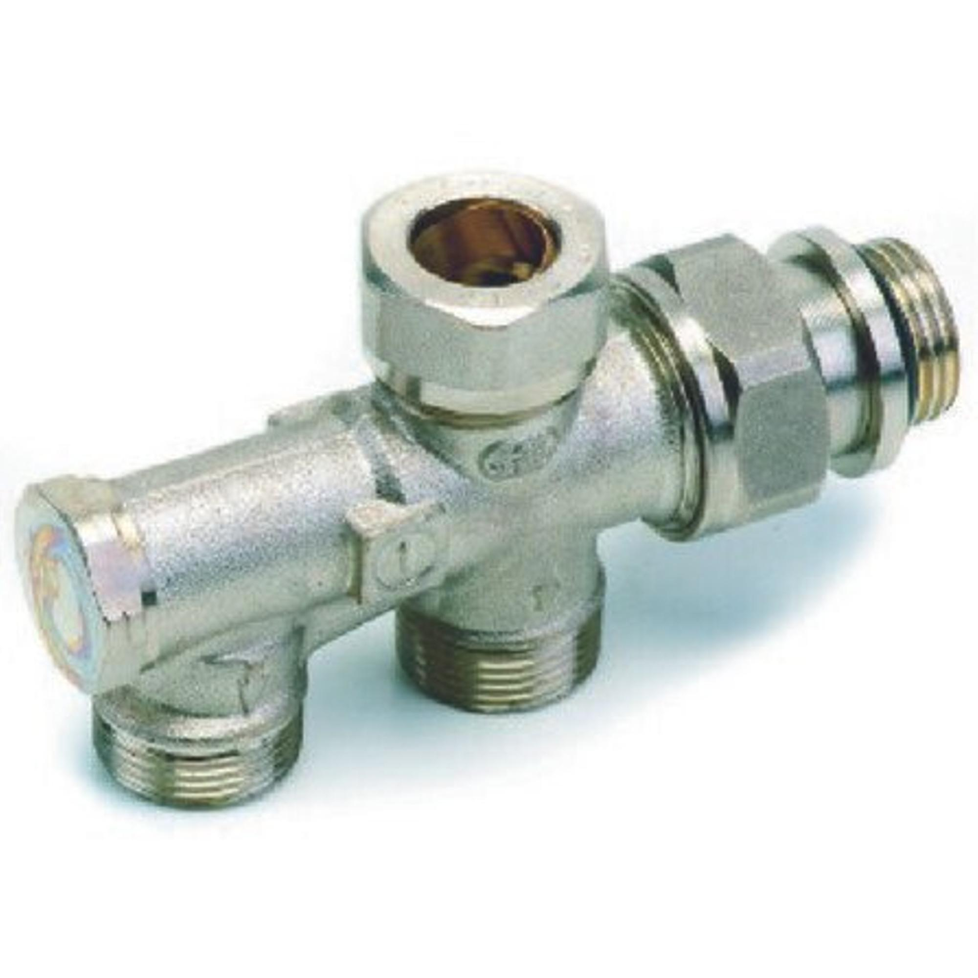 Comap Onderblok zelfdichtend 2 pijps M22 met afsluiter vernikkeld