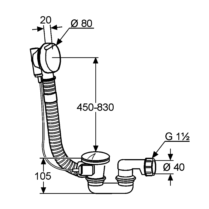 Kludi Rotexa 2000 badafvoer en overloopcombinatie met waste en kabel 85cm chroom
