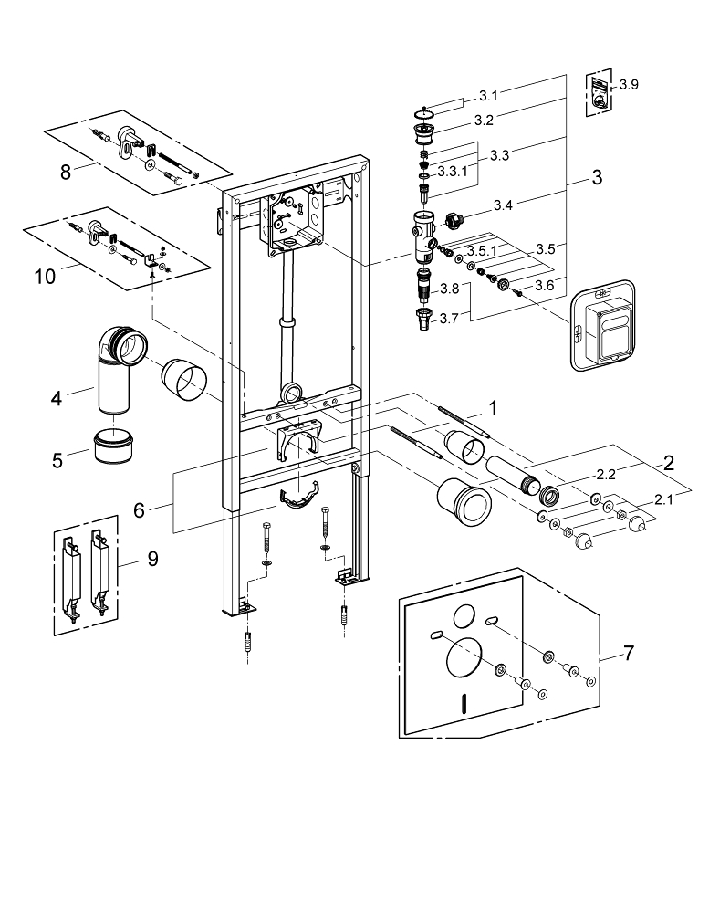 GROHE Rapid SL wc element voor voorwand of systeemmontage hoog 113cm voor drukspoeler