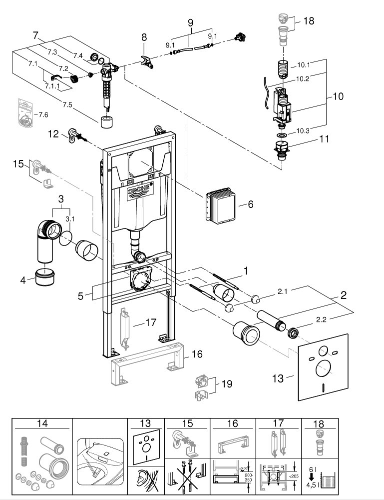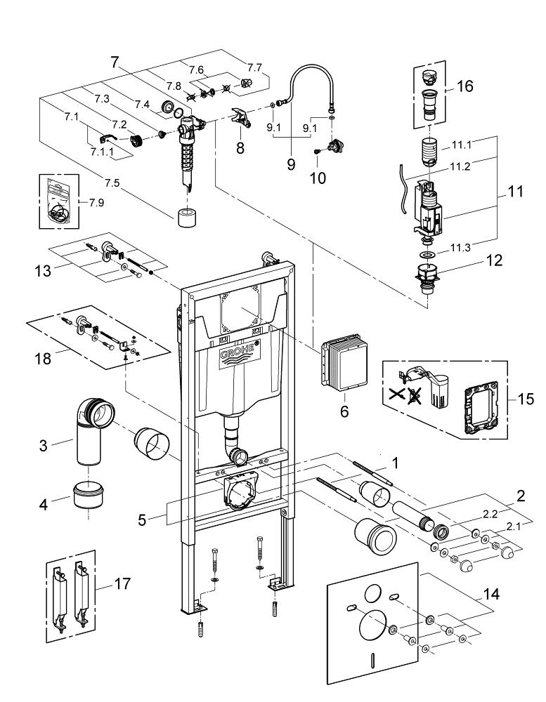 GROHE Rapid SL WC element inbouwreservoir met wandbevestiging 113cm hoog met geluidisolatieset