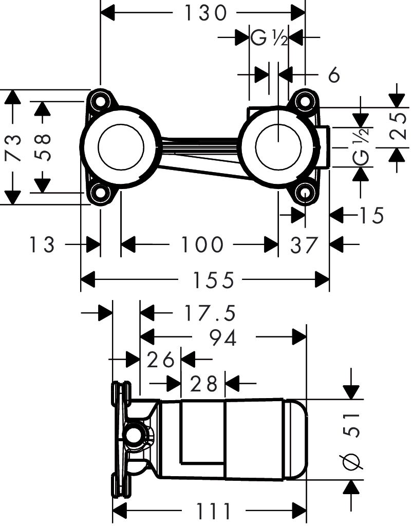 Hansgrohe inbouwdeel voor inbouw wastafelkraan