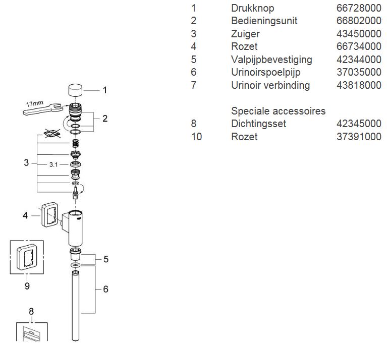 Betrouwbare prestaties en eenvoudige installatie De GROHE Rondo urinoirspoeler werkt bij een dynamische druk vanaf 0,5 bar en kan een maximale bedrijfsdruk van 5 bar aan. Hierdoor is hij geschikt voor verschillende sanitaire installaties. De inlaatverbinder zorgt voor een stevige en lekvrije aansluiting op het urinoir.