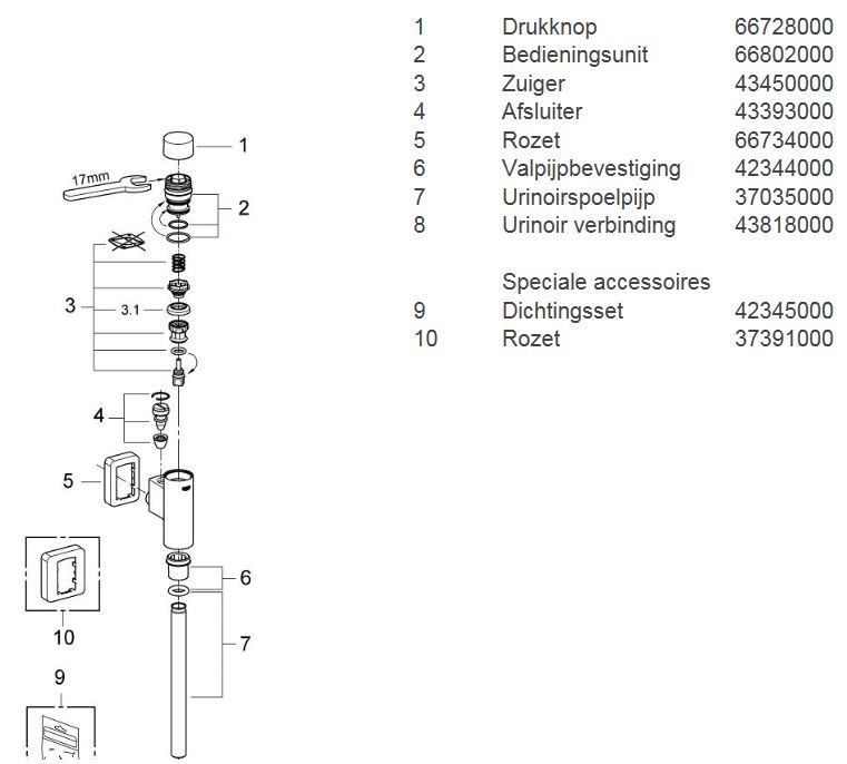 GROHE Rondo urinoirspoeler 1/2 met stopkraan, spoelpijp en verbinder chroom