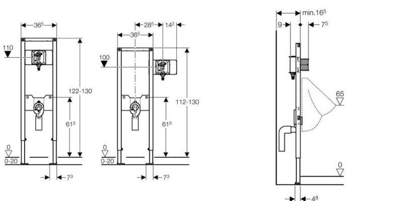 Geberit Duofix Urinoir element 112-130cm Universeel