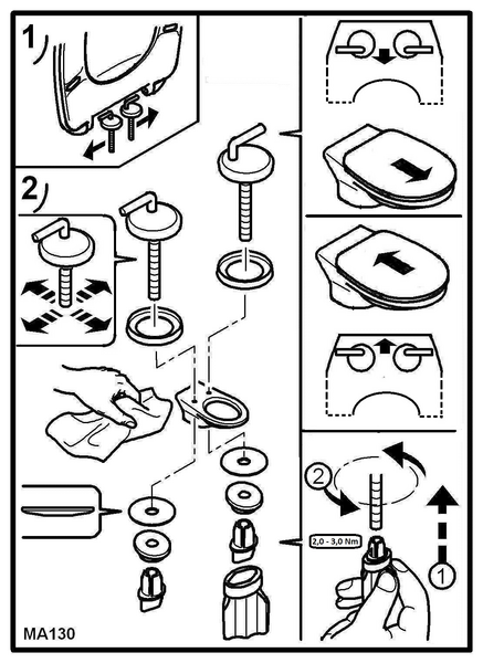 De meegeleverde RVS bevestiging is eenvoudig én snel te monteren doormiddel van een FastFix systeem. Een installatieoplossing waarmee je in een mum van tijd je closetzitting kan monteren. Een praktische installatie-oplossing voor montage van onderaf. Door de twee kunststof elementen aan elkaar te schroeven wordt de closetzitting betrouwbaar aan het toilet bevestigd. Dankzij het speciale formaat kan je de zitting met één hand installeren, ook als de ruimte beperkt is.