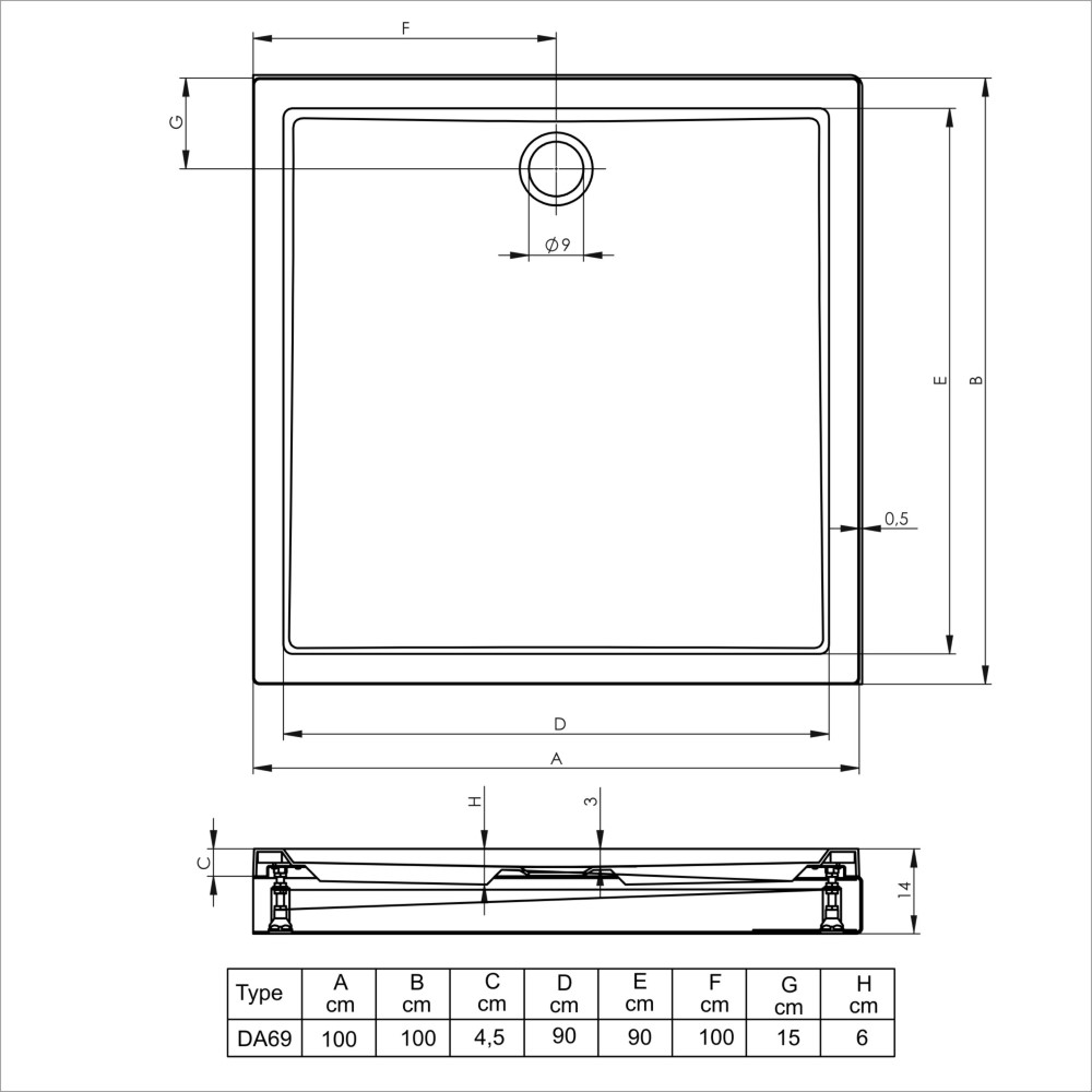 De DAVOS is een soortgelijke uitvoering als de Zürich, maar nu mét poten en panelen. Deze douchebak heeft een iets dikkere bodemplaat, waardoor de montage van poten mogelijk wordt. De bodemplaat is bij deze modellen niet vlak en daarom niet geschikt voor montage op de vloer. De bodemplaat wordt zichtbaar bij het weglaten van de panelen. Pootset en paneel worden meegeleverd.