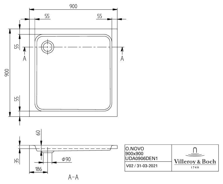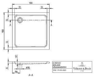 Villeroy & Boch Denia douchebak acryl vierkant 90x90x6cm wit
