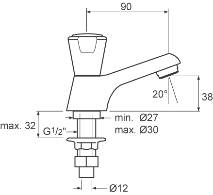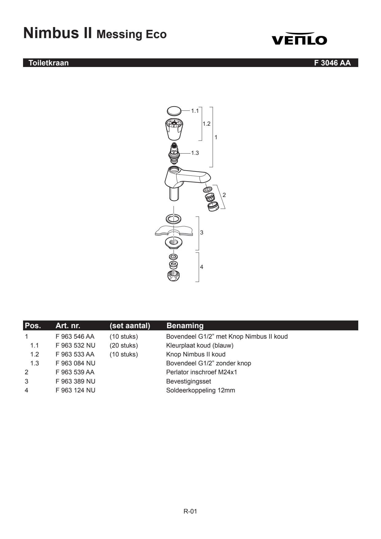 Venlo Nimbus II Messing Eco toiletkraan laag model met perlator chroom