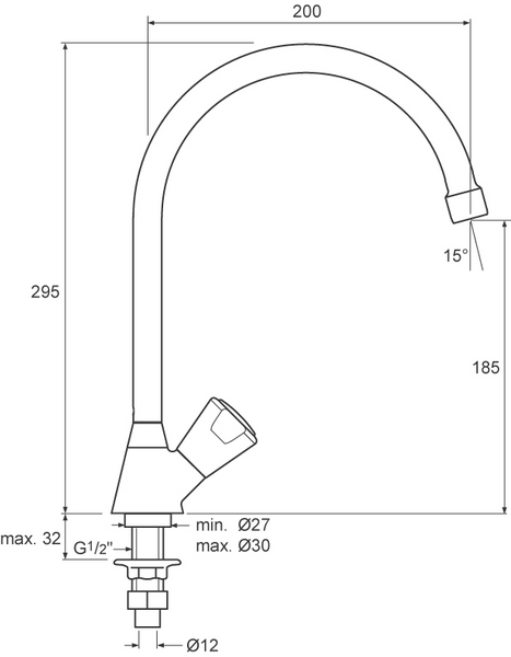 Venlo Nimbus II Messing Eco toiletkraan met hoge draaibare uitloop en perlator chroom