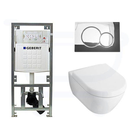 Villeroy & Boch Subway 2.0 Inbouwset met wandcloset wit softclose zitting afdekplaat chroom