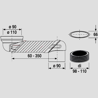 ABU sprongbocht verstelbaar 90x110mm 6cm 35cm