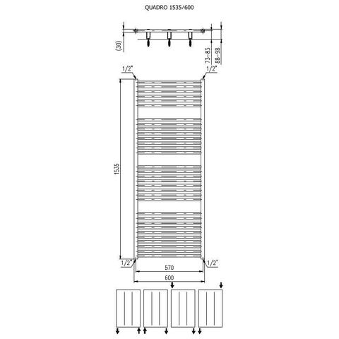 De Plieger Quadro designradiator is 153.5 centimeter hoog en 60 centimeter breed. De radiator heeft een capaciteit van 886 Watt en is verkrijgbaar in de kleur wit. Deze grootte en het eenvoudige design maken het mogelijk om de Quadro in iedere gewenste ruimte te plaatsen. De radiator heeft 4 aansluitpunten en kan in combinatie met een elektrisch verwarmingselement ook gebruikt worden als elektrische verwarming. De Plieger Quadro designradiator is dus multifunctioneel, betrouwbaar én mooi om te zien. Wat wilt u nog meer?