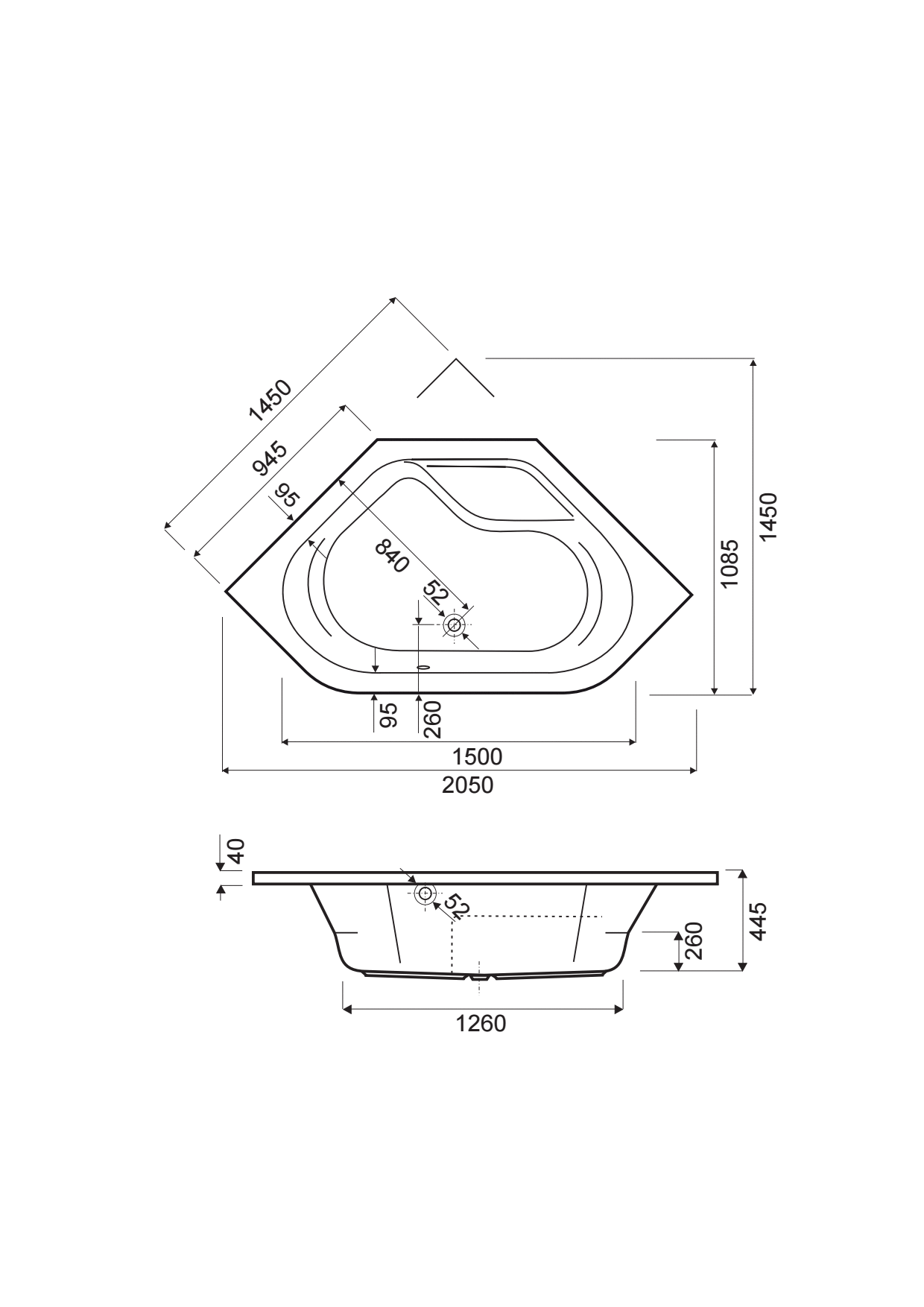 | Diameter afvoergat | 52 mm | |