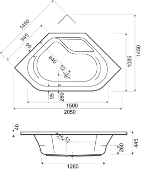 Wisa Anzio bad acryl zeshoekig 145x145x44,5cm wit