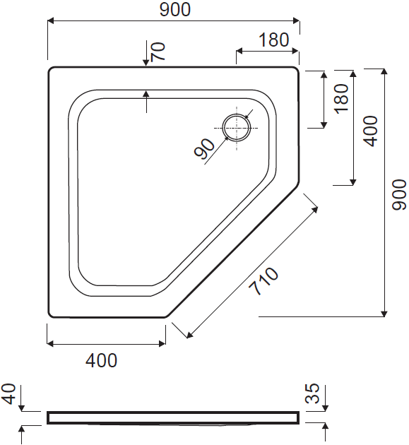 Wisa Malaga douchebak acryl vijfhoekig 90x90x3,5cm wit