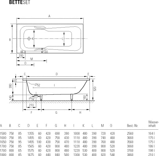 Bette Set bad plaatstaal rechthoekig 170x75x38cm met antislip wit