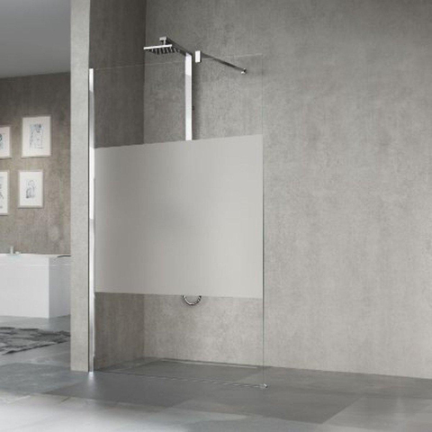 Novellini Giada inloopdouche H 98 100x195cn met muursteun 100cm mat chroom profiel en helder glas met satinband