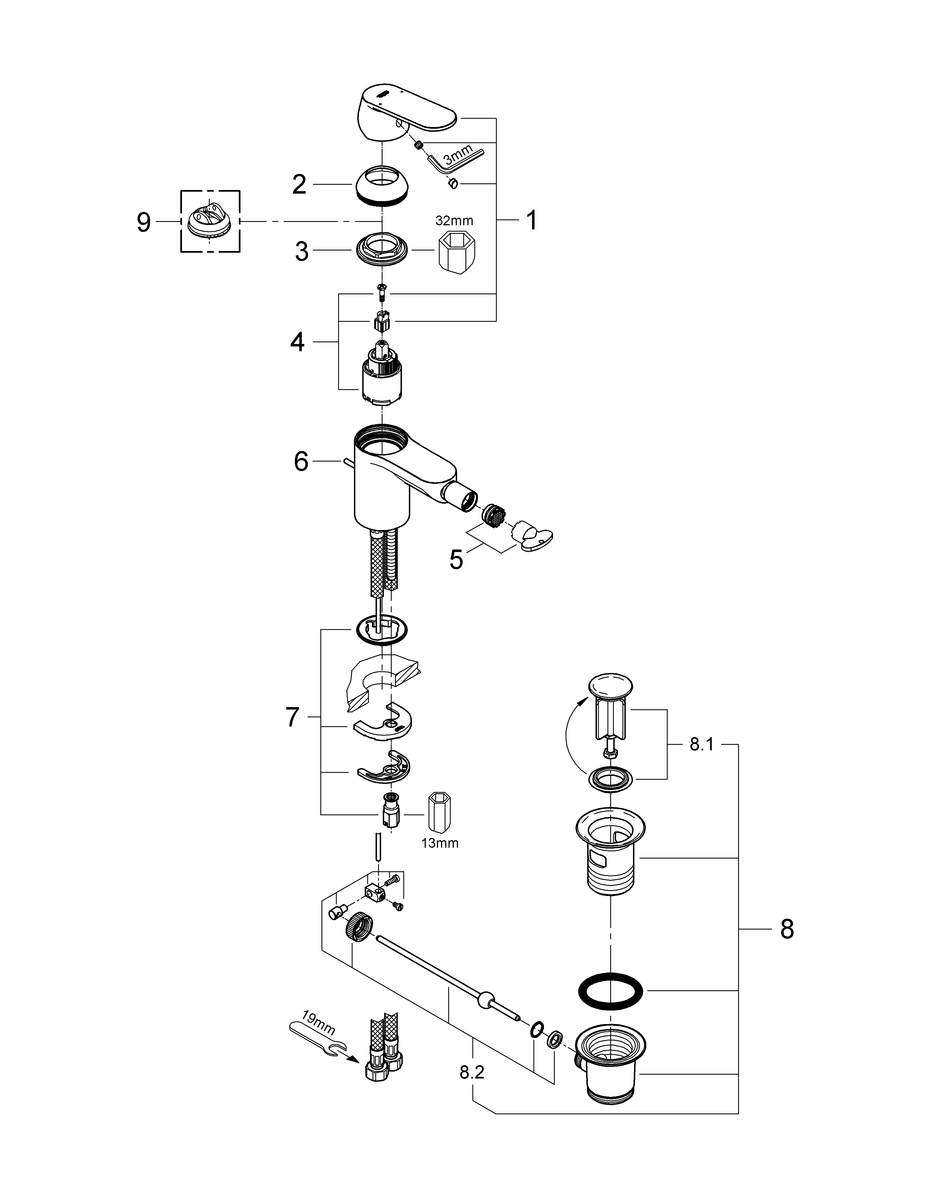 GROHE Eurosmart Cosmopolitan bidetkraan met waste chroom