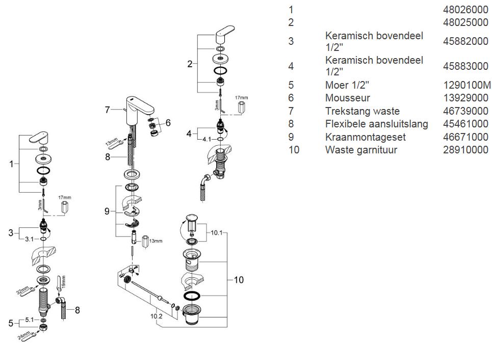 drukvaste, flexibele aansluitslangen tussen stopkranen en uitloop