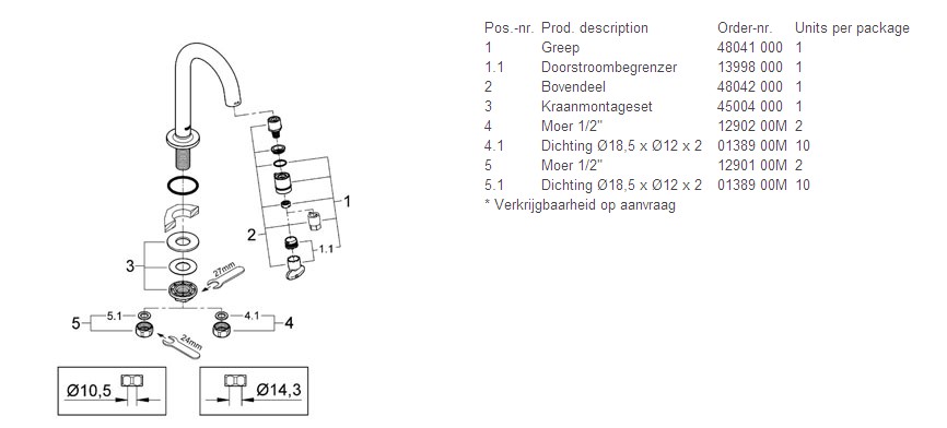 max 5,0 l/min doorstroombegrenzer bij 3 bar