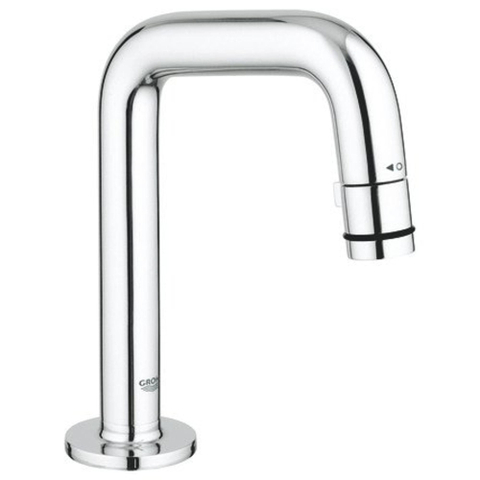 Universal toiletkraan - gladde gehoekte lijnen voor optimale hygiëne De Universal toiletkraan is teruggebracht tot de essentie. Het sobere, slanke design en de universele vormgeving passen goed bij de Cosmopolitan en Contemporary stijl kranen. De gangbare greep is vervangen door een eenvoudig draaimechanisme aan het eind van de uitloop. De kranen zijn afgewerkt met GROHE StarLight® chroom. Binnen de serie heb je keuze uit vier designs, zodat je altijd wel een kraan vindt die bij je badkamer past. Kies voor een kraan die op de wastafel moet worden bevestigd met een C-vormige uitloop of met een uitloop onder een hoek van zeven graden. Of kies een kraan aan de muur met een uitloop van 105 mm of 185 mm, al naargelang de stijl van je wastafel.