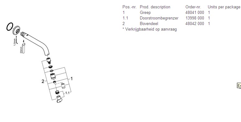 max 5,0 l/min doorstroombegrenzer bij 3 bar