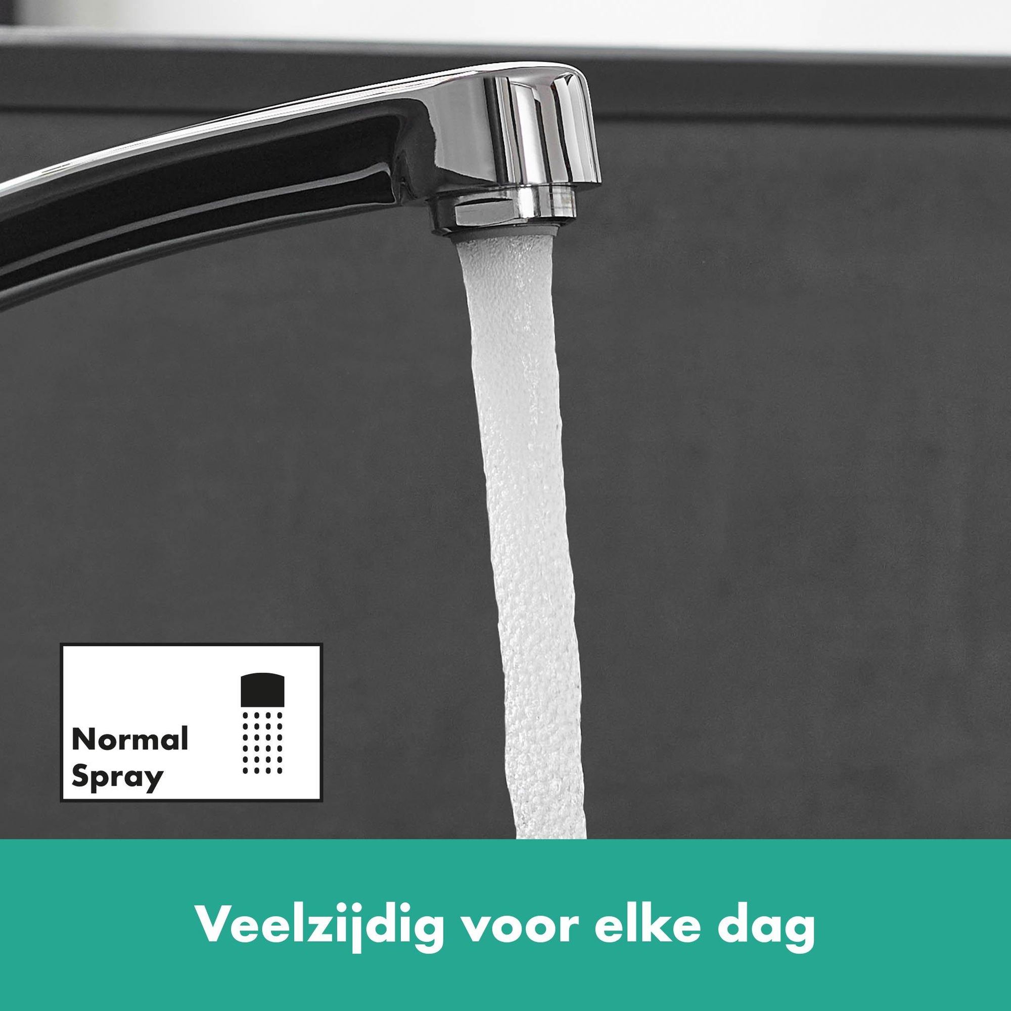 hansgrohe heeft een technologie ontwikkeld, waarbij water ruimschoots met lucht wordt vermengd (AirPower). Hierdoor is de waterstraal bij deze mengkraan niet alleen voller, zachter, hij spat hij minder.