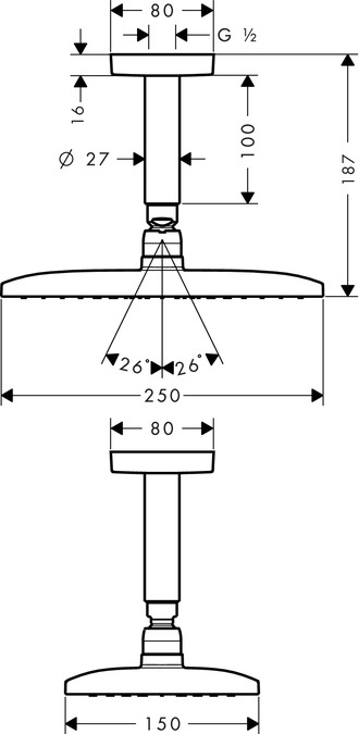 Hansgrohe Raindance hoofddouche E240 1 jet inclusief plafondaansluiting chroom