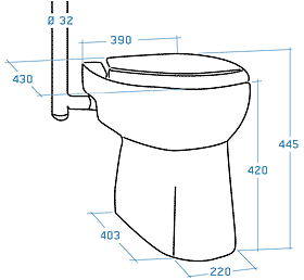 De Sanibroyeur Sanicompact C43 Eco+ is een uiterst compact model toilet met geïntegreerde faecaliënvermaler, ideaal voor kleine ruimtes. Dit staande closet in wit keramiek en kunststof wordt geleverd met een softclose toiletzitting.Met een diepte van slechts 43 cm is de Sanicompact C43 Eco+ het kleinste model uit de Sanibroyeur-range. Het toilet heeft geen reservoir en voert af via 32 mm afvoerleidingen, met een afvoercapaciteit van 100 L/min. De vermaler zorgt ervoor dat vaste afvalstoffen door kleinere leidingen afgevoerd kunnen worden. Dit maakt het model perfect voor het installeren van een extra toilet in bijvoorbeeld een garderobe of andere kleine ruimtes.