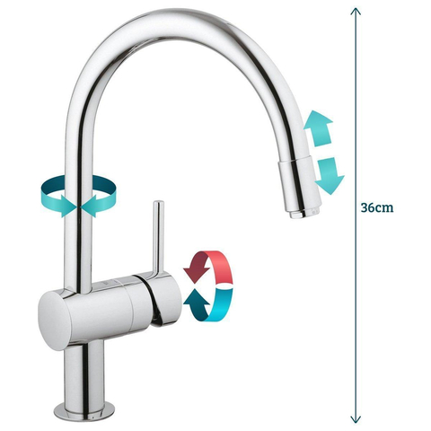 GROHE Minta Keukenkraan - hoog - draaibare/uittrekbare ronde uitloop - chroom