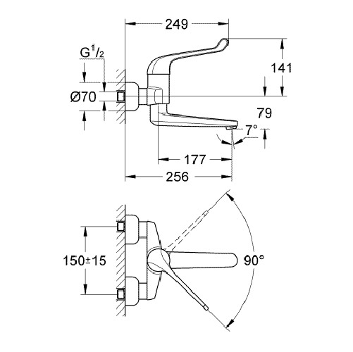 GROHE Euroeco veiligheids wandkraan draaibare uitloop chroom