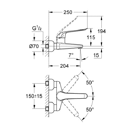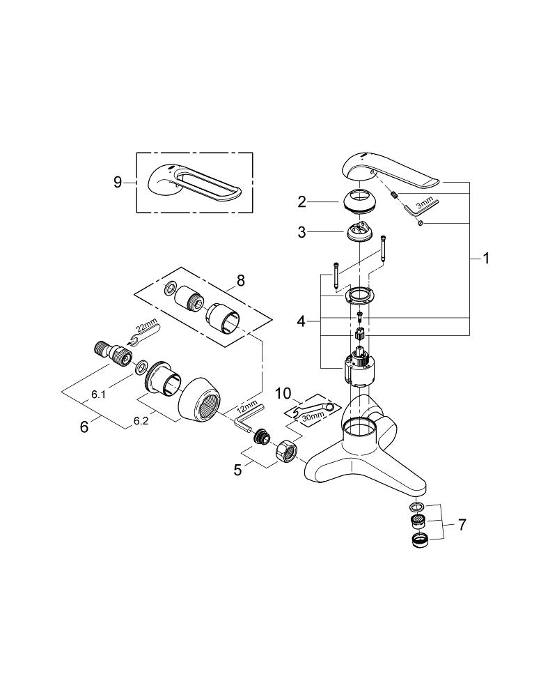 GROHE Euroeco wandkraan met koppelingen inclusief hendel 17cm 20,3cm chroom