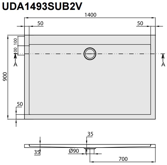 Villeroy & Boch Subway douchebak acryl rechthoekig 140x90x3,5cm wit 0949861
