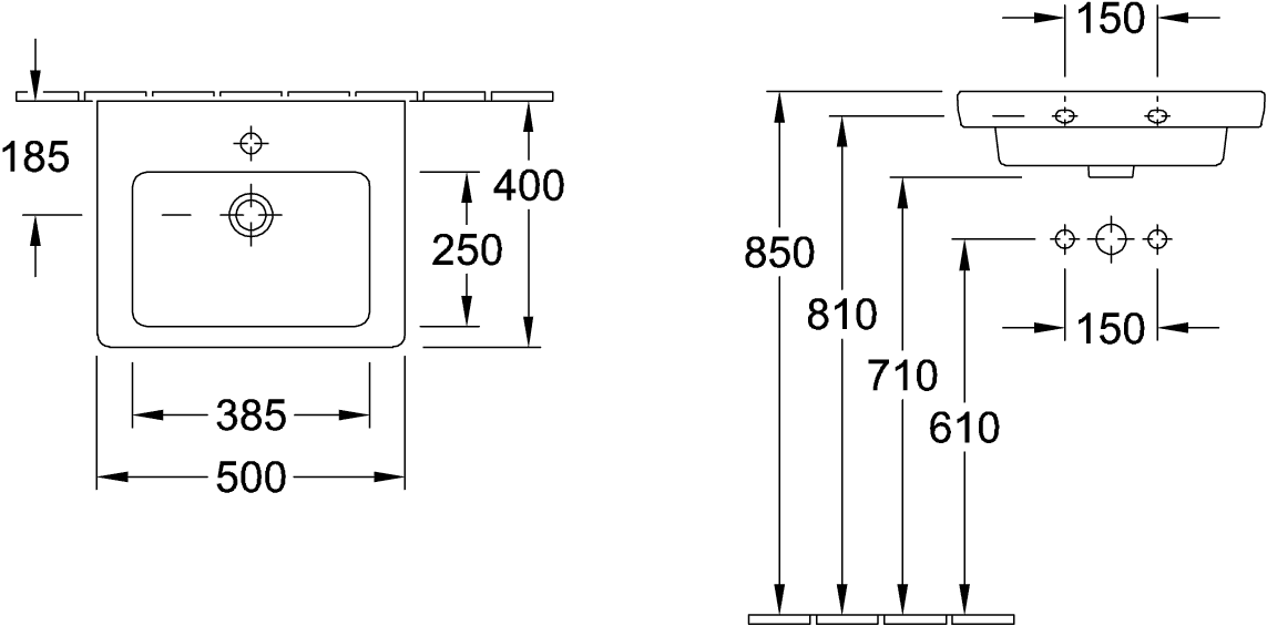Villeroy & Boch Subway 2.0 fontein onderzijde geslepen 50x40cm inclusief kraangat met overloop