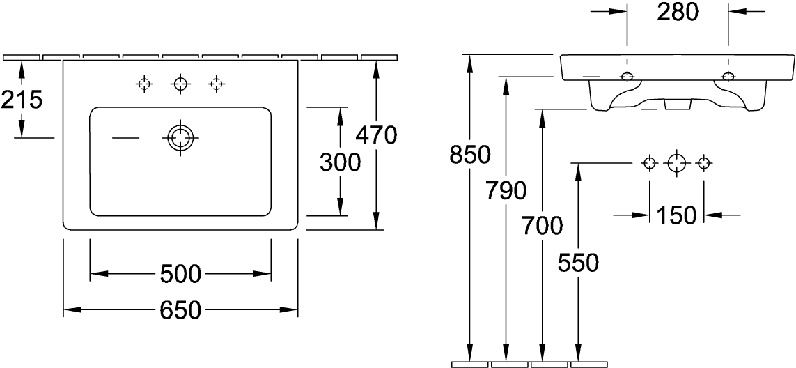 Villeroy & Boch Subway 2.0 meubelwastafel 65x47cm 1 kraangat met overloop wit