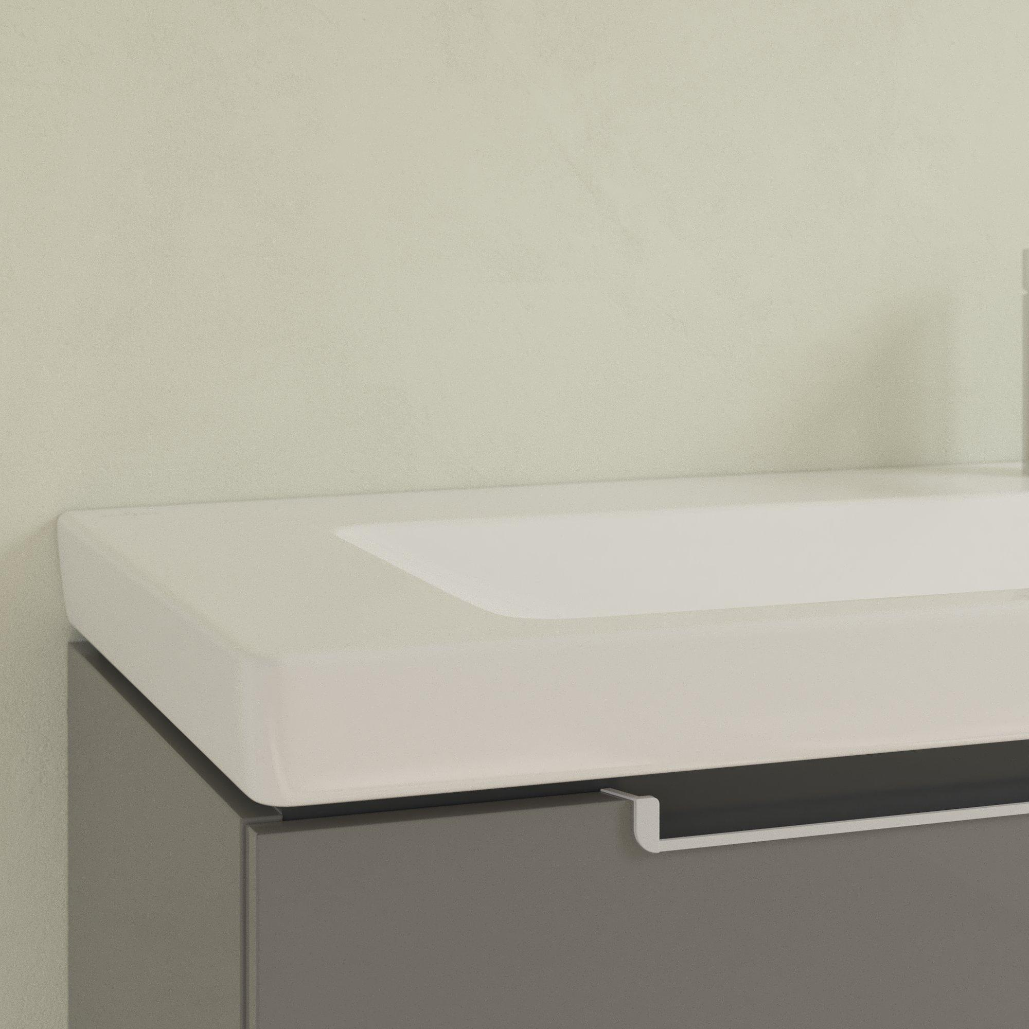De rechthoekige meubelwastafel van de collectie Subway 2.0 van Villeroy & Boch maakt indruk met de praktische, eenvoudig te reinigen opbergvlakken rondom het bekken en het typerende tijdloze design van de collectie. De rechthoekige vorm onderscheidt zich met chique rondingen in een verder minimalistische look. Het royale bekken is bijzonder praktisch bij het wassen van handen of zelfs het wassen van het haar. De wastafel is gemaakt van hoogwaardig sanitairkeramiek en is uiterst onderhoudsvriendelijk en duurzaam.