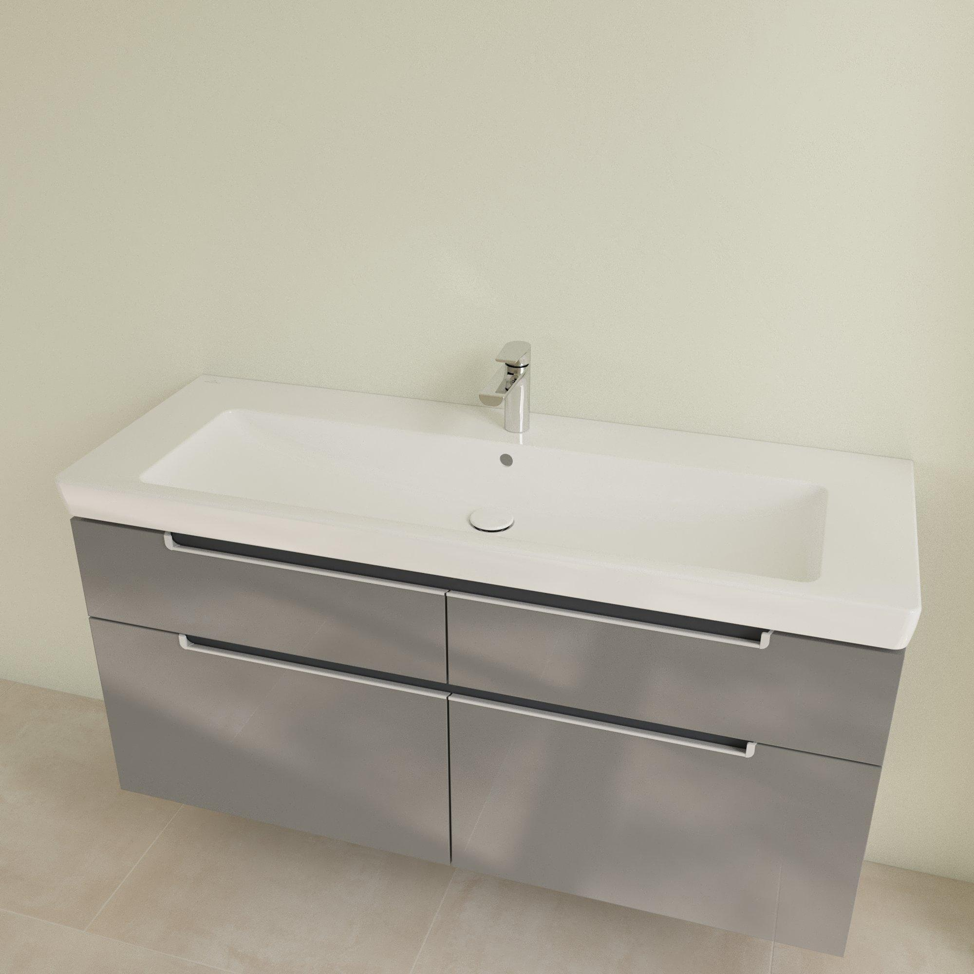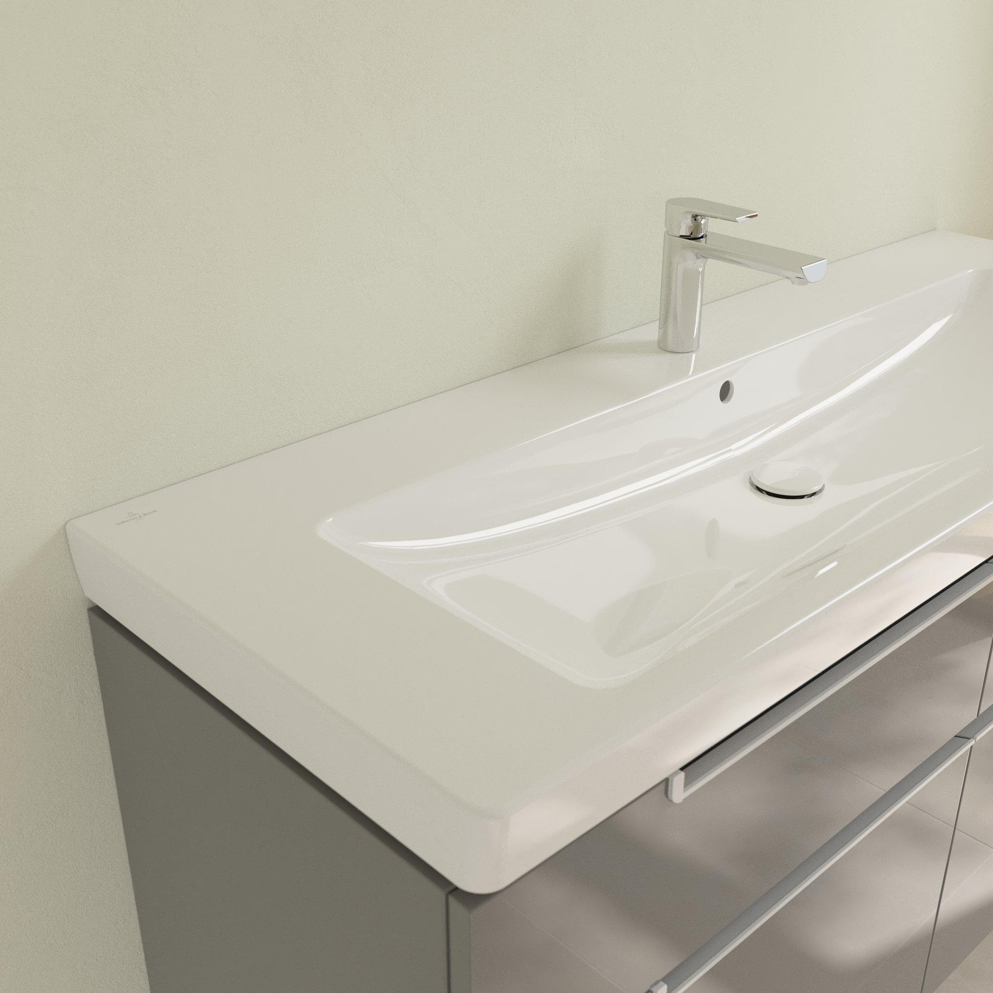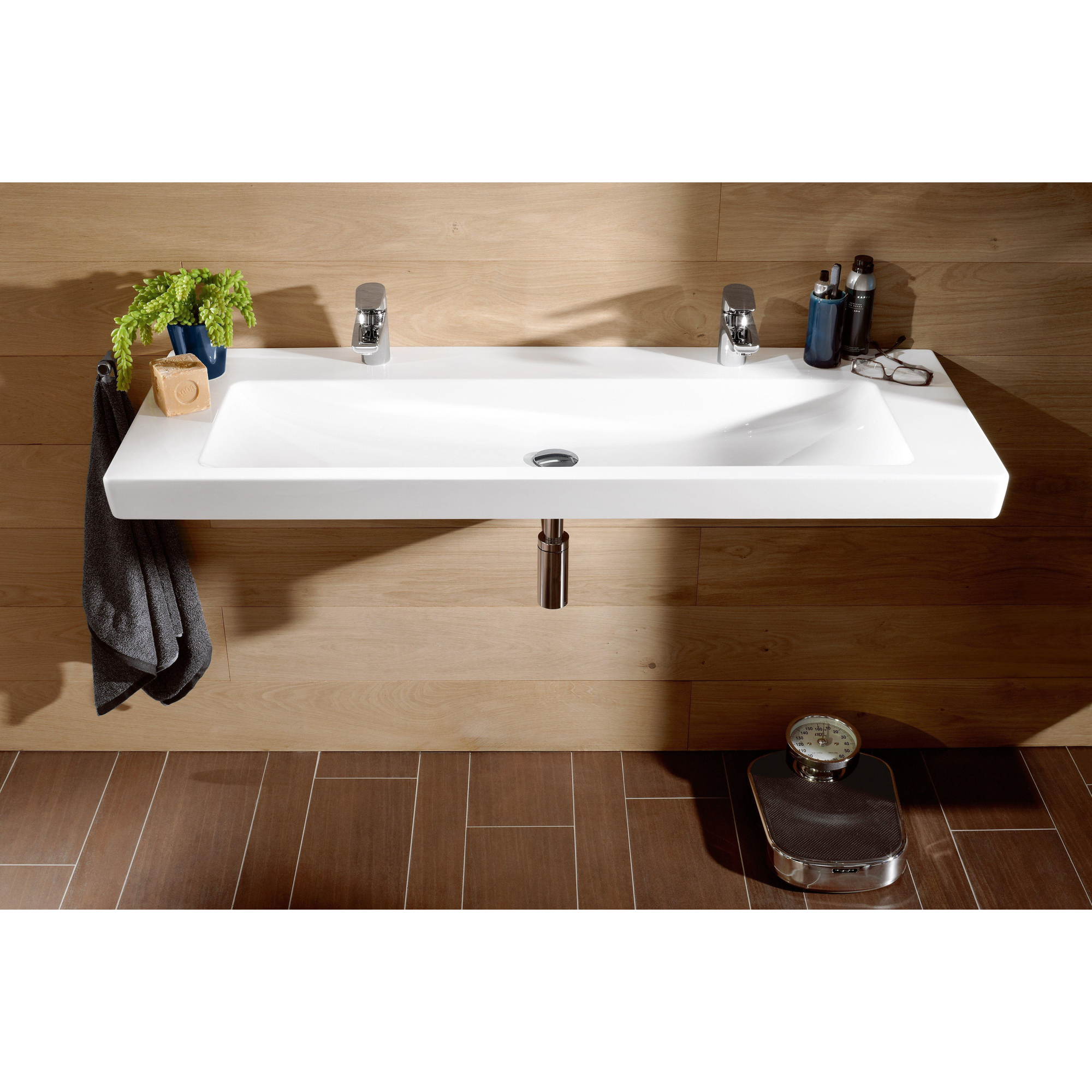 Met het tijdloze, minimalistische design is de rechthoekige dubbele meubelwastafel van de collectie Subway 2.0 duidelijk gericht op functionaliteit: Het diepe, functionele bekken en de brede opbergvlakken aan de zijkant of op de kranenbank bieden maximaal comfort. De wastafel van Villeroy & Boch biedt plaats aan twee kranen tegelijk, zodat twee personen eenvoudig tegelijkertijd hun badkamerroutine kunnen uitvoeren - perfect voor het dagelijks gebruik door gezinnen! Gemaakt van hoogwaardig sanitairkeramiek is hij ook uiterst onderhoudsvriendelijk en bestand tegen krassen, stoten en slagen.