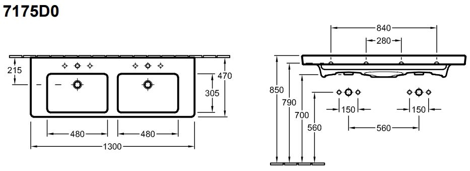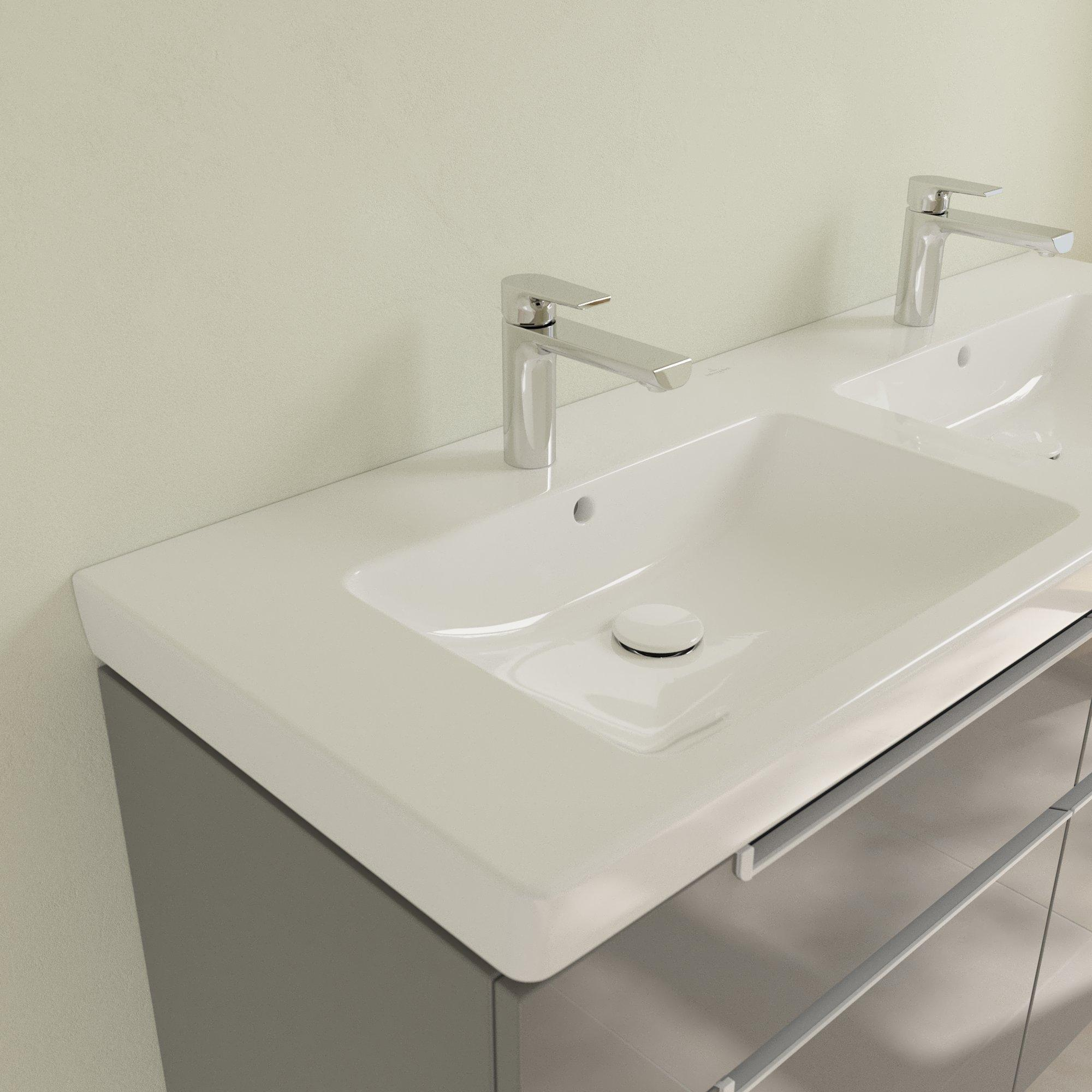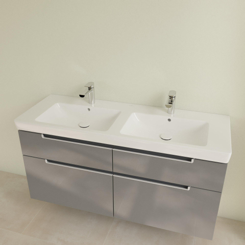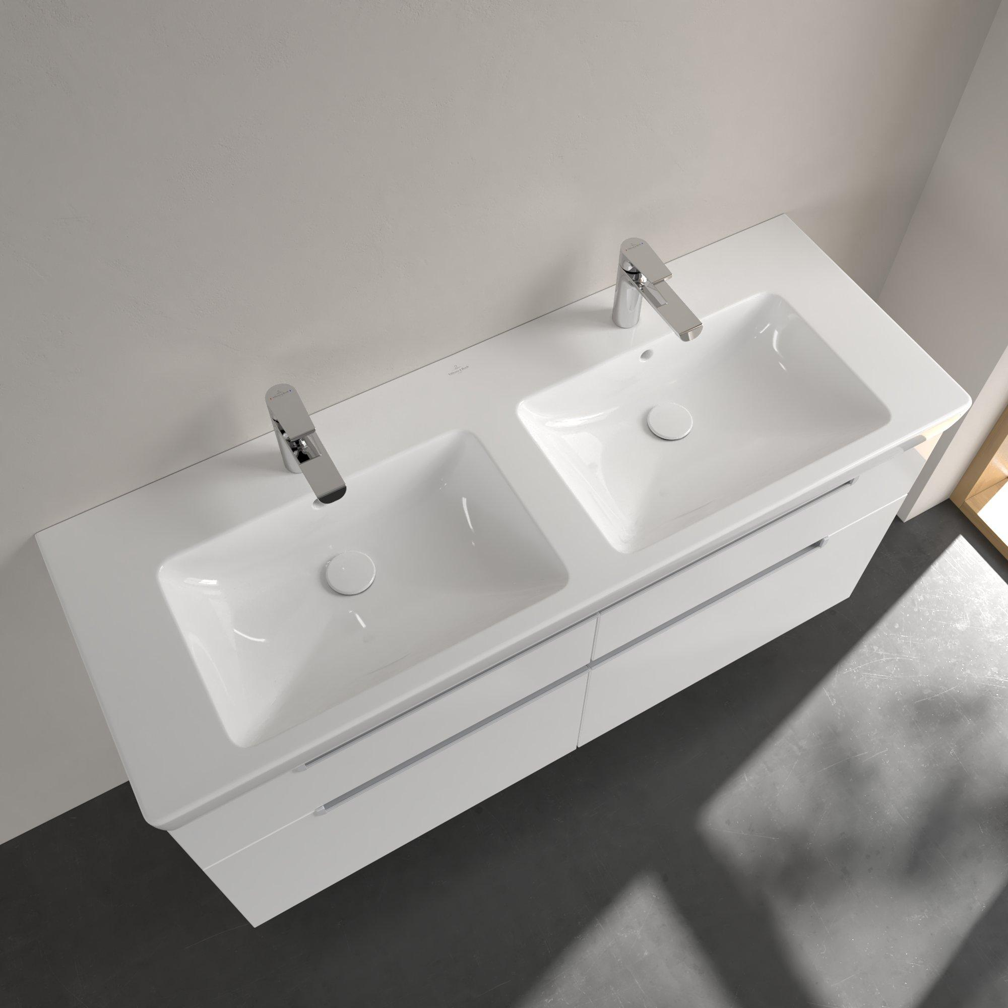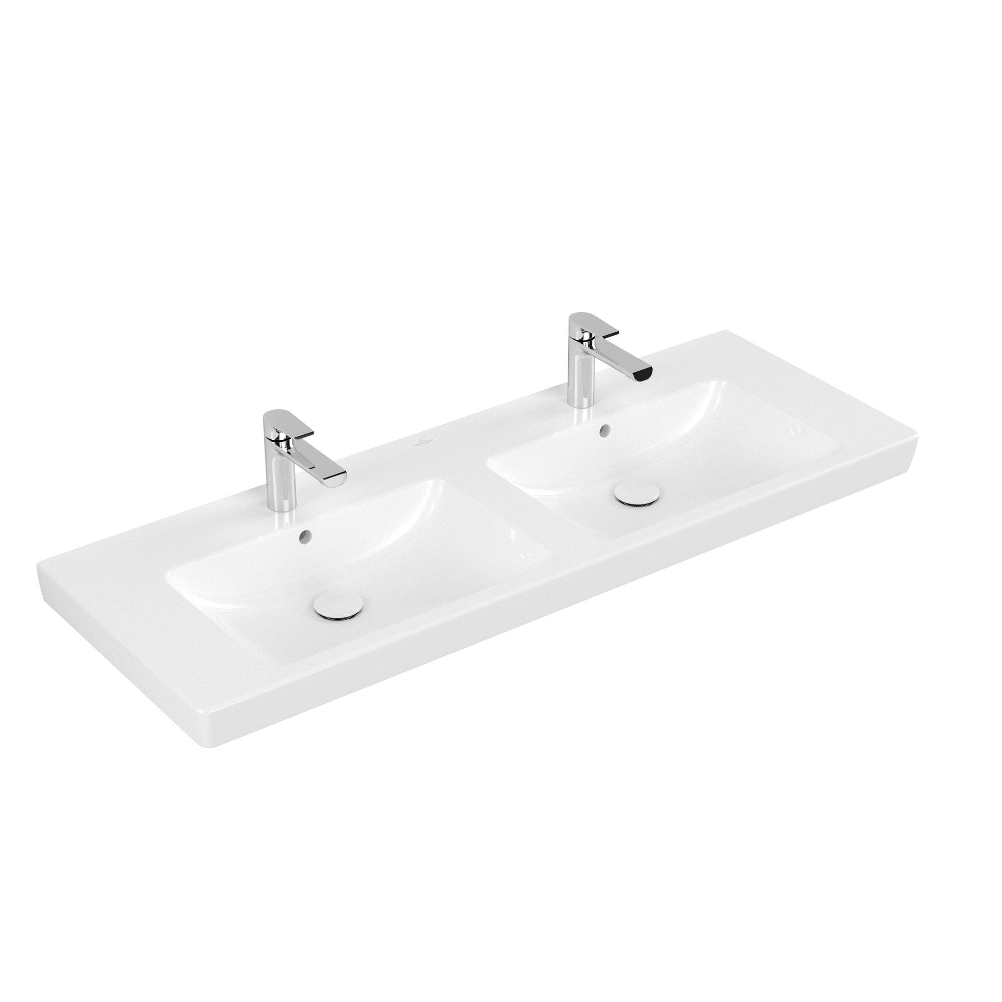Villeroy & Boch Subway 2.0 meubelwastafel dubbel 130x47cm met 2 kraangaten met overloop