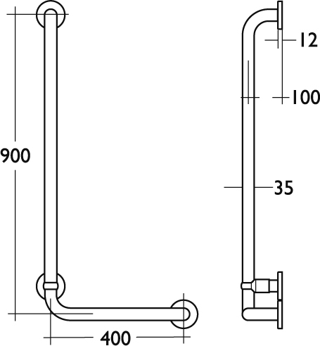 Ideal Standard Contour 21 wandgreep 90° 90x40cm rechts wit