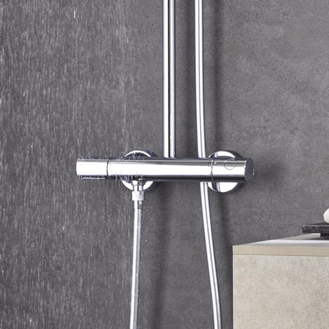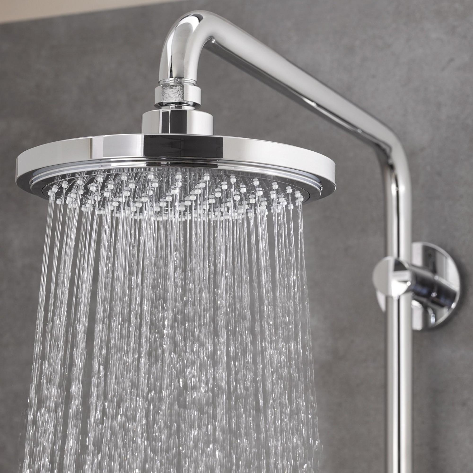 GROHE Euphoria 180 mm hoofddouche: stijlvol water besparen onder de douche De Euphoria Stick Cosmopolitan is maar 215 mm lang en is voorzien van GROHE DreamSpray® technologie, voor een efficiënte verdeling van het water over de 45 sproeigaatjes, en GROHE CoolTouch® technologie, waardoor de greep nooit te heet wordt. GROHE StarLight® chroom en de SpeedClean sproeigaatjes zorgen voor een douche die er perfect uitziet. De Euphoria Stick Cosmopolitan is ook opgenomen in de GROHE EcoJoy® reeks, waardoor je moeiteloos water kunt besparen door het waterverbruik te beperken tot 9,4 liter per minuut.