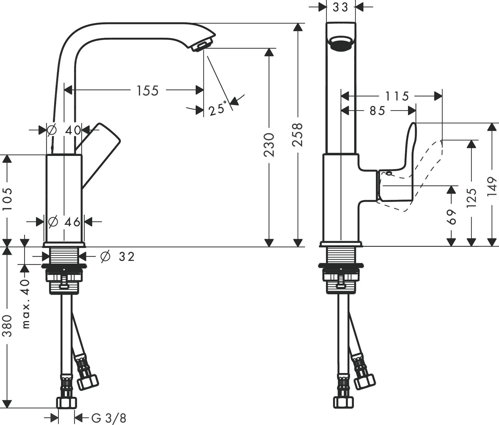 De ééngreeps wastafelmengkraan Metris 230 zonder afvoergarnituur van hansgrohe overtuigt door zijn extra bewegingsvrijheid, zijn comfortabele bediening, minimalistische vormgeving en technische eigenschappen. De extreem grote afstand tussen uitloop en fontein (ComfortZone 230) alsmede de in een hoek van 120 graden draaibare uitloop laten veel ruimte voor een veelzijdig dagelijks gebruik - voor uitgebreide lichaamsverzorging, haren wassen of voor het vullen van zelfs zeer grote pannen.