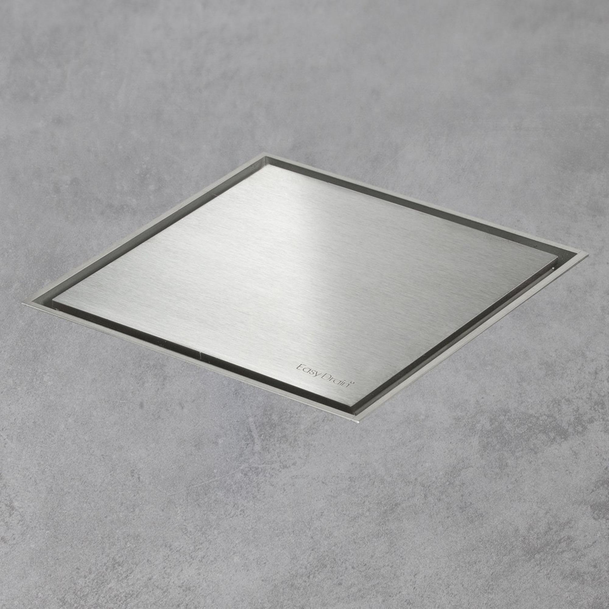 Easy Drain AquaJewels Quattro Zero geborsteld 15x15cm met zijuitlaat 50mm waterslot 30/35/50mm RVS AJQ 15X15 ZM